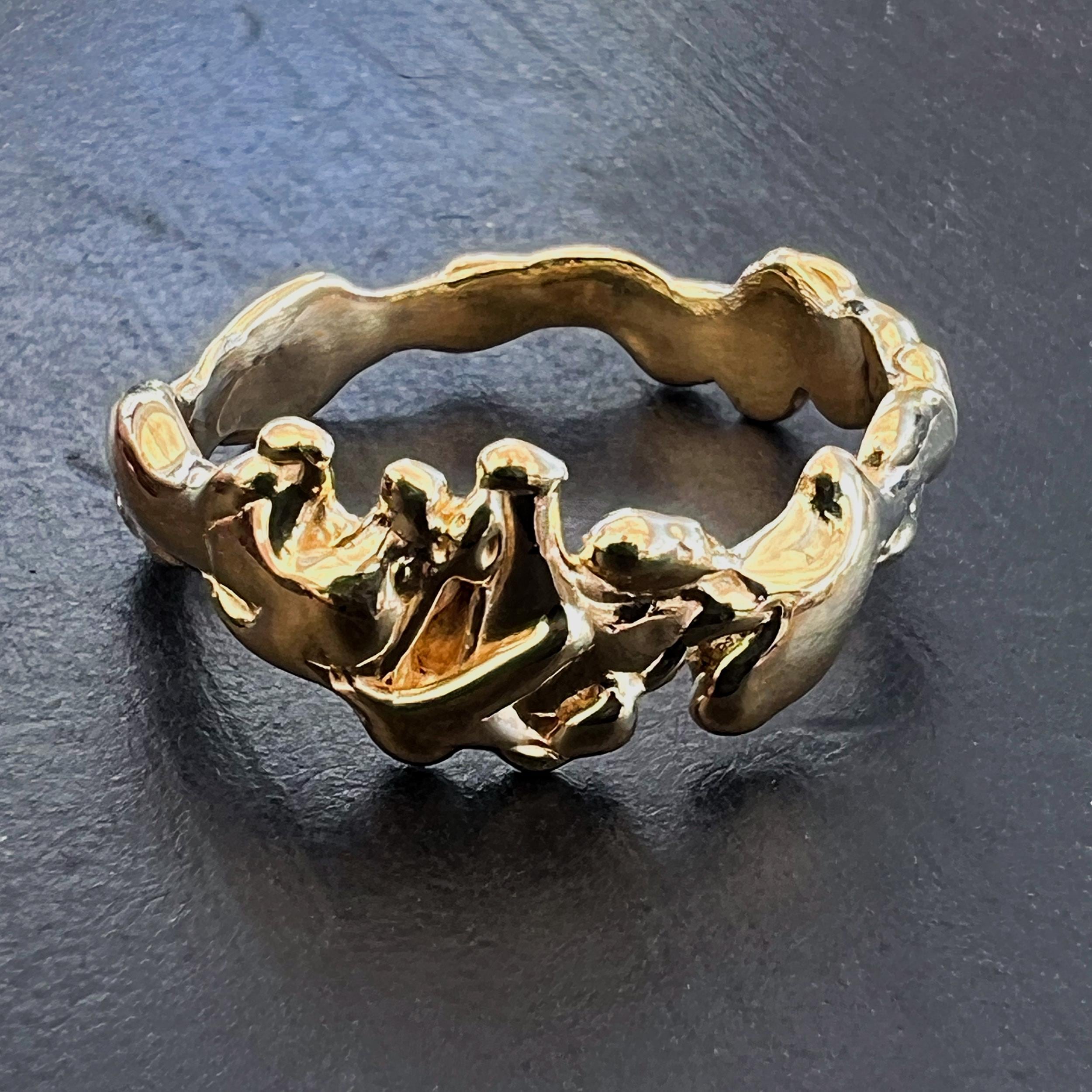 The Flair River Ring exudes the charm of an endlessly winding river frozen in time. Hand-melted wax went into the design process for each one of these rings so no two are quite alike. Please specify ring size when ordering. Available in solid sterling silver or 14k gold vermeil using no nickel.