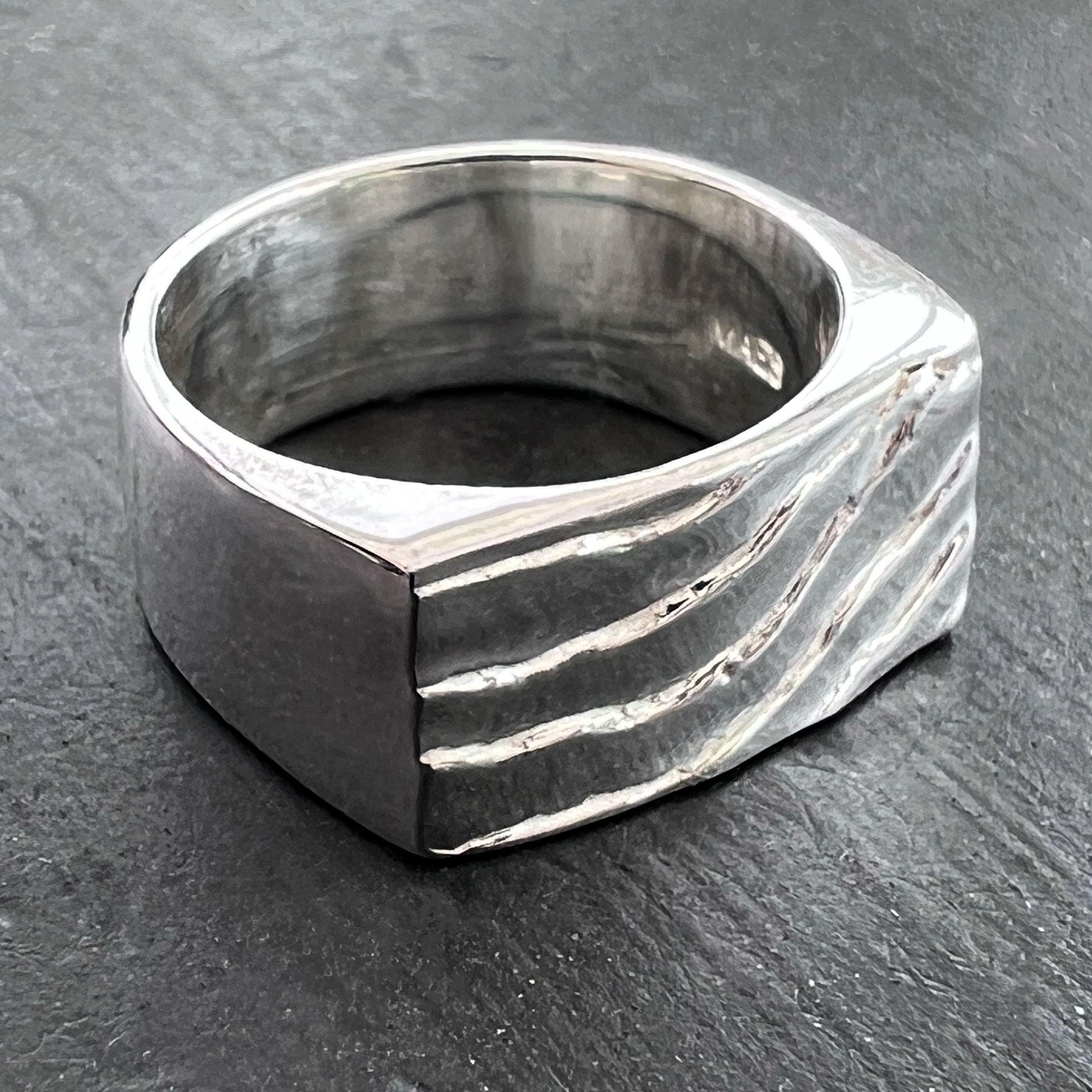 The Cali Signet ring is a thicker version of my Baja Signet ring and showcases the cuttlebone texture I'm known for. Please specify ring size when ordering. Available in cast solid sterling silver or a heavy 14 karat gold plated brass cast using no nickel.