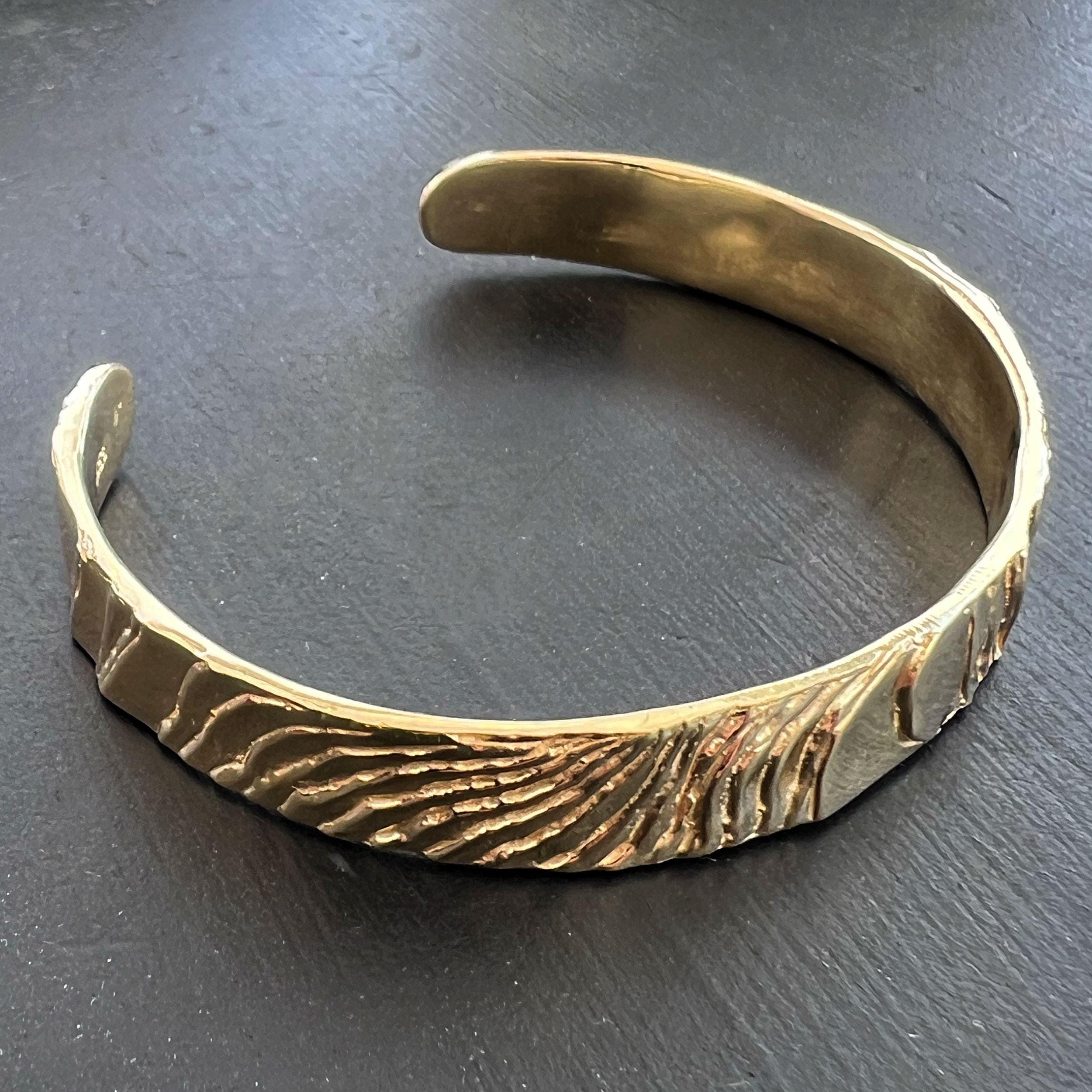 The Cuttlebone Wave cuff captures the gorgeous natural overlapping textural planes inherent in my trademark style. This cuff is impressive and stunning. Be ready for loads of compliments. Available in solid sterling silver or 14k gold vermeil with no nickel.