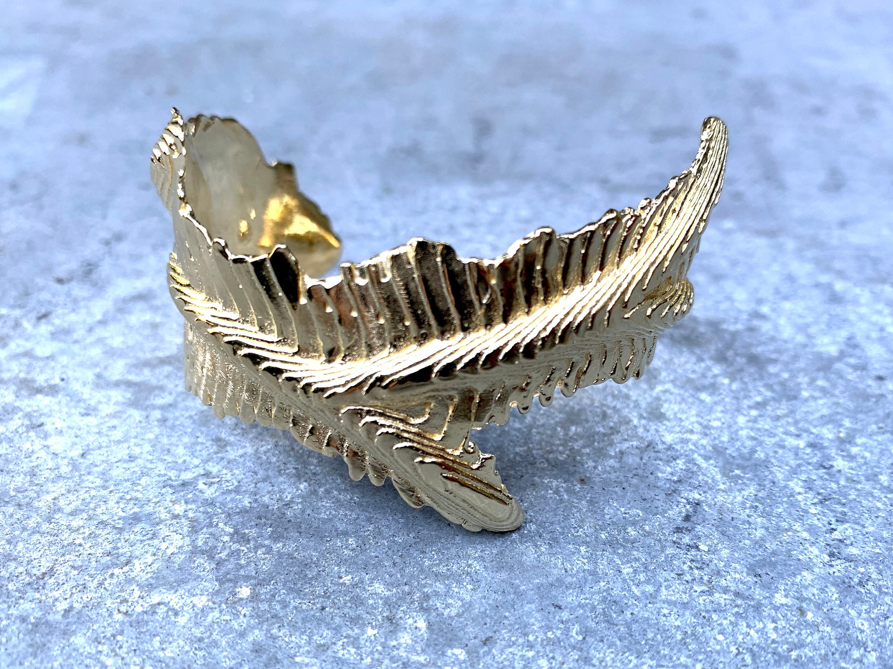 The Cuttlebone Leaf Cuff is one of my best examples of the inherent natural beauty of cuttlebone casting. The high-polished organic stepped texture reflects light as elegantly as a faceted stone.